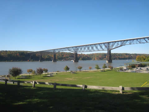 This place made the best hot dogs, and must be the only hot dog joint that also sells gluten-free and vegan bakery products. But its much more than that, its the classic urban pioneer story, a young couple from New York City following their passion, returning home, and making a business out of a boarded up storefront downtown. The owner said repeatedly in our conversation “there’s nothing wrong with Poughkeepsie, nothing wrong”. Wow- yes!! And then he told me about the old railroad bridge. What old bridge? Apparently they had just opened a new walkway over the Hudson on an old rail bridge,, just around the corner from the restaurant. And there it was: