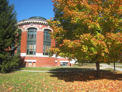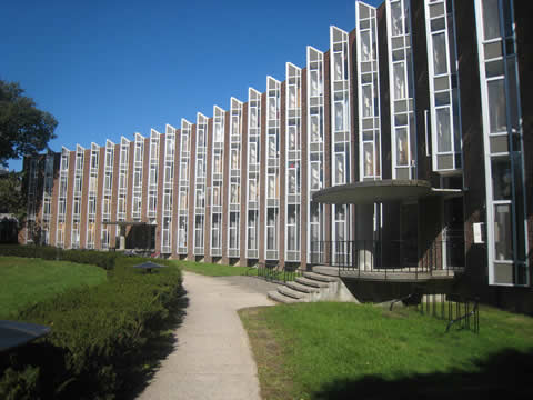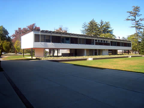 Crossing the river and heading north , we come to Poughkeepsie, the home of Vassar College. Vassar is a classic private, and very expensive, northeastern liberal arts college. I always dreamed of going to a school like this, lazing under one of its bountiful oaks , reading the classics with my chums whilst plotting our next Oxfordian adventure. I think I watched too many English schoolboy dramas growing up. Me, I ended up at a large bland state university in Buffalo, and most of the year the grounds there were covered not with leaves and Chaucer, but with a thick layer of ice encrusted with chicken wing bones. Anyways, over the years, Vassar has added to its brick gothic core with several interesting buildings by some of the leading lights of architecture . Reminded me of Stanford in that regard.