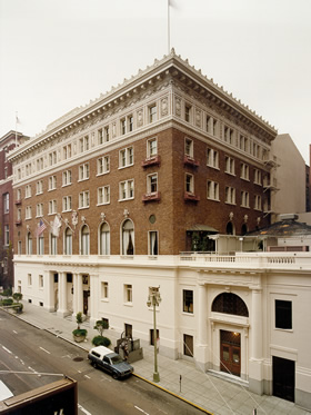 Commuting via Muni or BART for us means walking down from Nob Hill to the Powell Street BART Station. Descending to the station, one passes through a dense neighborhood of retail with apartments above, and interspersed amongst these buildings are a collection of noble brick buildings that are almost civic in their character; modern-day urban palazzi. They differ from their neighborhood brethren in their absence of retail at the street, or apartments and lodging above. These buildings look as though they might be libraries, banquet halls, or even theaters. Well, to varying degrees , they are all of these, they are, in fact, private clubs. My dear reader, we bring you Clubland.