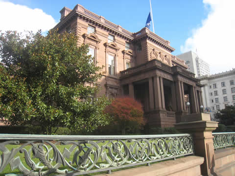- The Joint: The Club occupies the Flood Mansion atop Nob Hill, the only one of the great Nob Hill mansions to survive the quake. The mansion is noteworthy in one respect here. It’s not brick, but rather a very rare west coast example of brownstone..