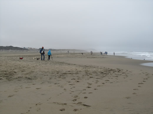 Descending from the Sutro Heights, we ambled out to the beach. Visiting Ocean Beach can elicit a provocative range of experiences. On a blessedly sunny weekend day, it may look like any beach- packed. But more often, it is this- overcast and quiet. Which brings us back to the fog. The drama and excitement associated with the fog is at its leading edge, when it is barreling down on you, ready to sweep you up, all gusty wind and cold. But once it wins, and it always does, it goes quiet- the wind ceases, and noises are muffled, yes as though under a thick white blanket. And on this day, sound was muffled, the streets quiet, the beach deserted. There was a few dog walkers, but there was a graffitti artist- “I wounder, if you wounder”.
