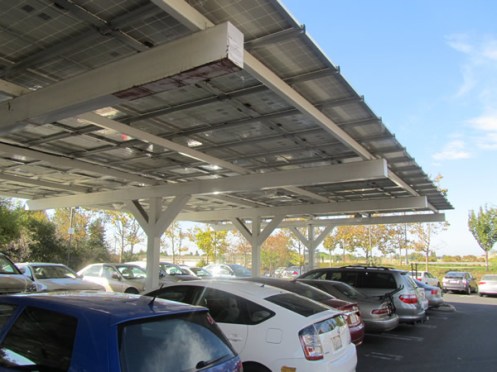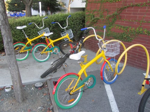 As I inched closer to the heart of the campus, I saw more bikes. Moving through the parking lots, and there were plenty of them, I noticed some were shaded with photovoltaics. Yes, Google was doing their part. A nice touch, but I still imagined many solo auto commuters heading out here; as my walk out had shown this place to be largely in the middle of nowhere.
