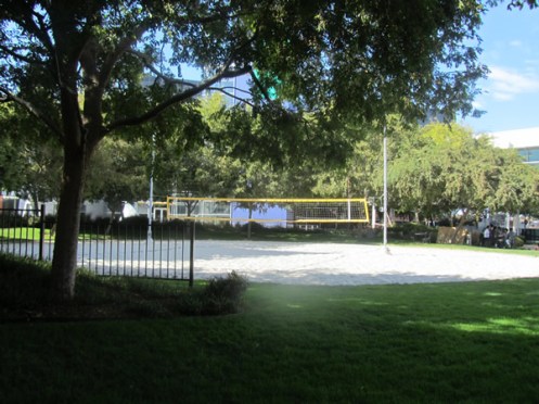 Here on the sumptiously landscaped grounds, engineers frolicked with IT managers, and everything was just right. There were organic gardens,and beach volleyball courts.