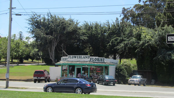 It doesn’t take long to become immersed in all things funerary once leaving the Colma Station. And after passing a monument shop, and what else, a florist, I arrived at Woodlawn Cemetery. I did not intend to walk through it, but rather take in what may be the finest administrative building in the town. But as I walked up , I smelled something very odd. It was smoke, but it definitely wasn’t wood that was burning if you get my drift. I can’t describe the smell actually, it wasn’t that offensive, but because I knew what it was, I nearly wretched. Here is the building, and there goes Uncle Ed up into the clouds. I backed away slowly.