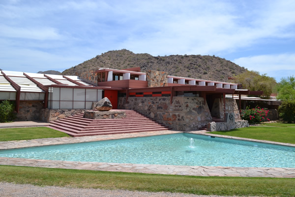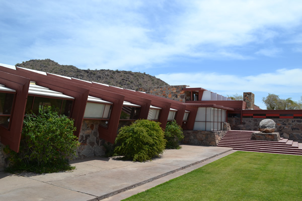 My next stop was the legendary Taliesen West, in Scottsdale. Frank Lloyd Wright, his life and career a mess, came west in the early 30’s to start an Architecture school. And he found a piece of pristeen desert land far from Phoenix to build his dream, a little desert utopia and laboratory.