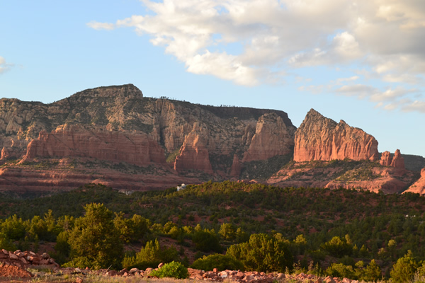 So often on these trips, the things you most anticipate seeing , (and perhaps its just that heightened expectation), leave you wanting; but those that are thrown in because they’re on the way leave more of a mark. That would be the case time and time again on this trip. As I felt the welt on my forehead from Taliesen, I realized I probably was going to be more likely to remember my afternoon at Arcosanti. Likewise ahead, I had looked forward to hiking in Sedona the next day, but was not at all prepared for the incredible beauty of the Chapel of the Holy Cross at sunset. A perfect melding of a building to its landscape.