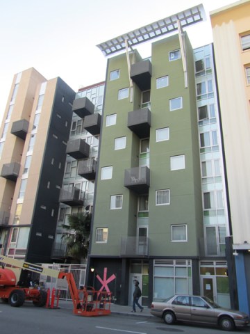 The neighborhood is a combination of old and new. In the second block alone, the legendary and still boarded up original Original Joe’s sits on one side of the street while across the street sits an apartment building that was the site of the first LGBT riot in San Francisco, at the old Compton’s Cafeteria, in its time a center for the transgendered community. And amidst these old buildings sits Curran House, a very fine affordable housing building by one of San Francisco’s best housing architects, David Baker.