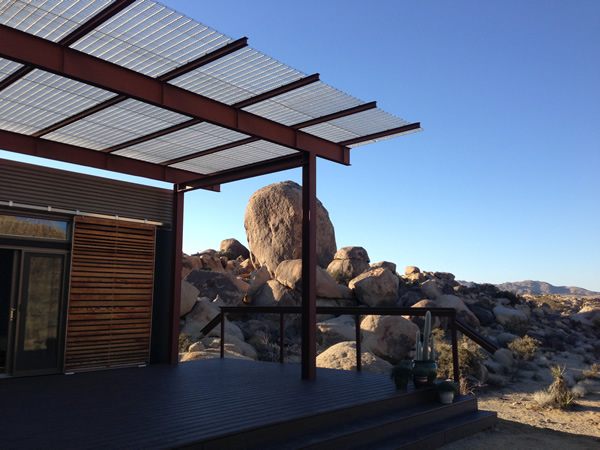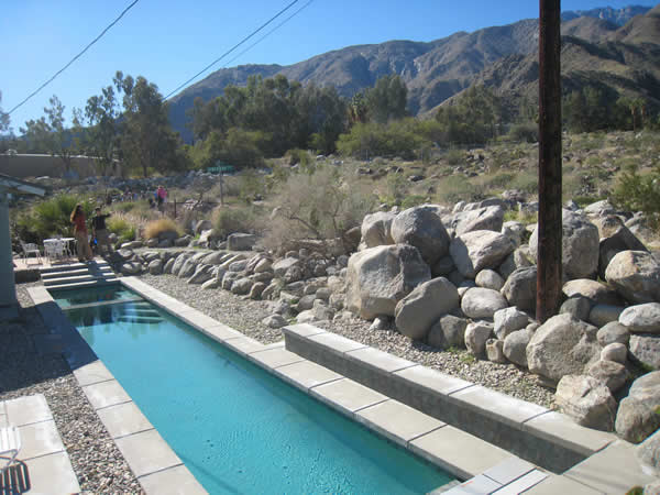 A slightly less taxing approach is to simply set the building gently on the desert floor, and allow all manner of rocks , sand, or desert fauna to co-exist with one’s pristeen modern dwelling. But no reason one still can’t heartily embrace outdoor living, a narrow lap pool or well placed deck can often thread between the most stationary of massive rocks.