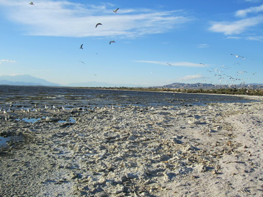 And farther out , one can bear witness to a different kind of desert creep, in this case the toxic mash-up that is the extraordinary Salton Sea- here the desert strives to evaporate this accidental lake and return the saline basin to its prior briny aridity.