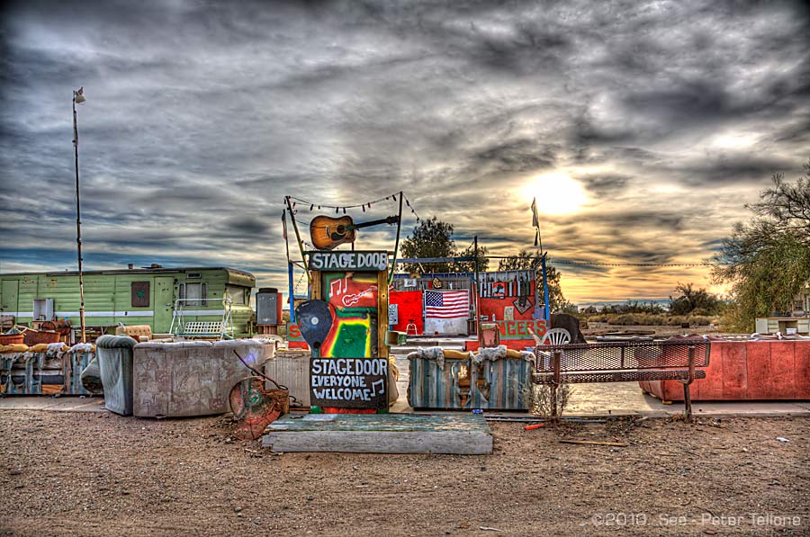 Of course, sometime it just doesn’t work out. And one of the beauties of a place with endless space , cheaper land, and mobile living , is you can go. The desert is littered with salt-encrusted monuments to broken dreams, be it the roadside service station: