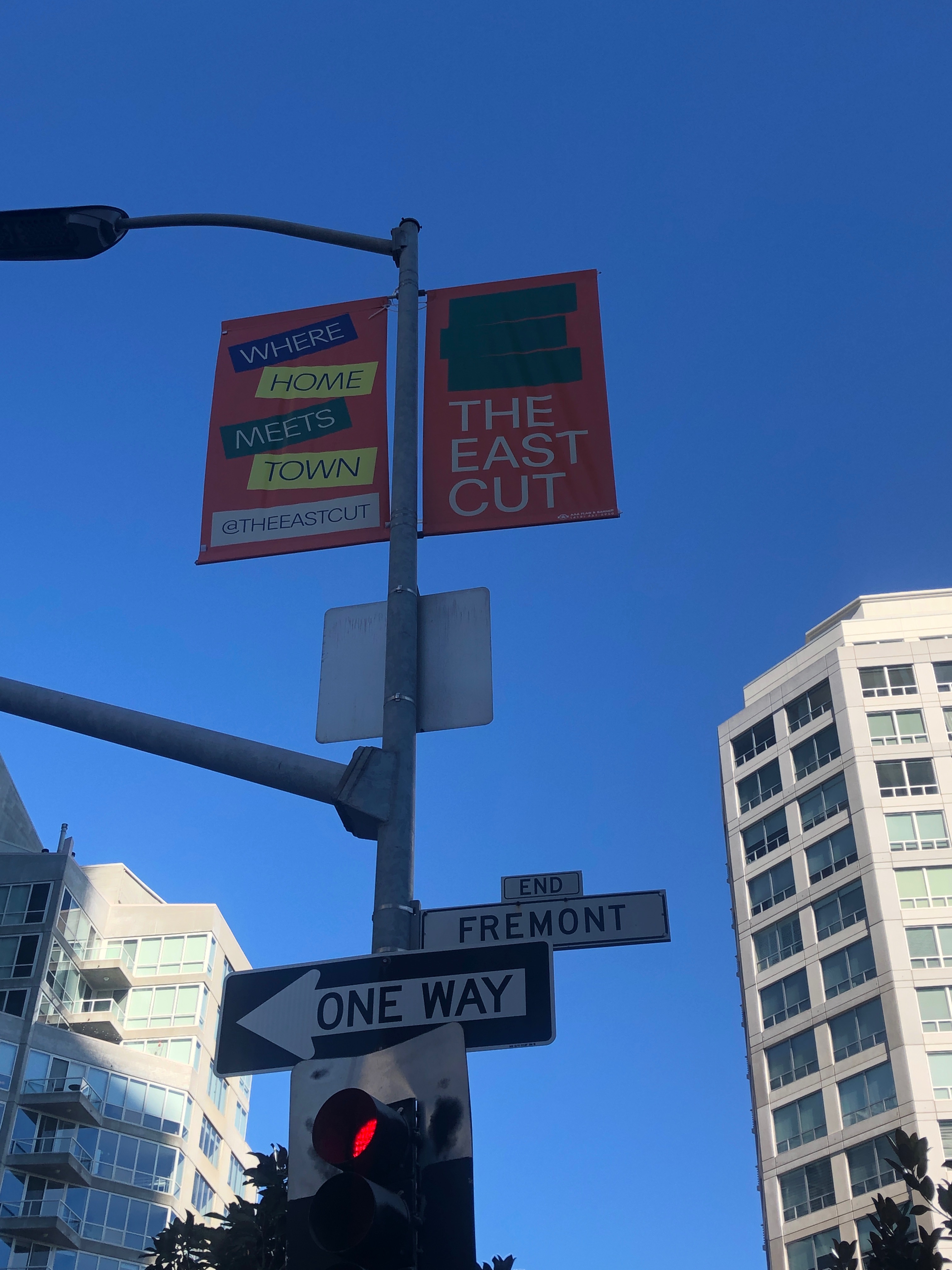 Its easy to stay on track here. East Cut is a Community Benefit District, which means local businesses contribute to its upkeep. So you are never far from a reminder as to where you are: You will see this throughout the area when walking.