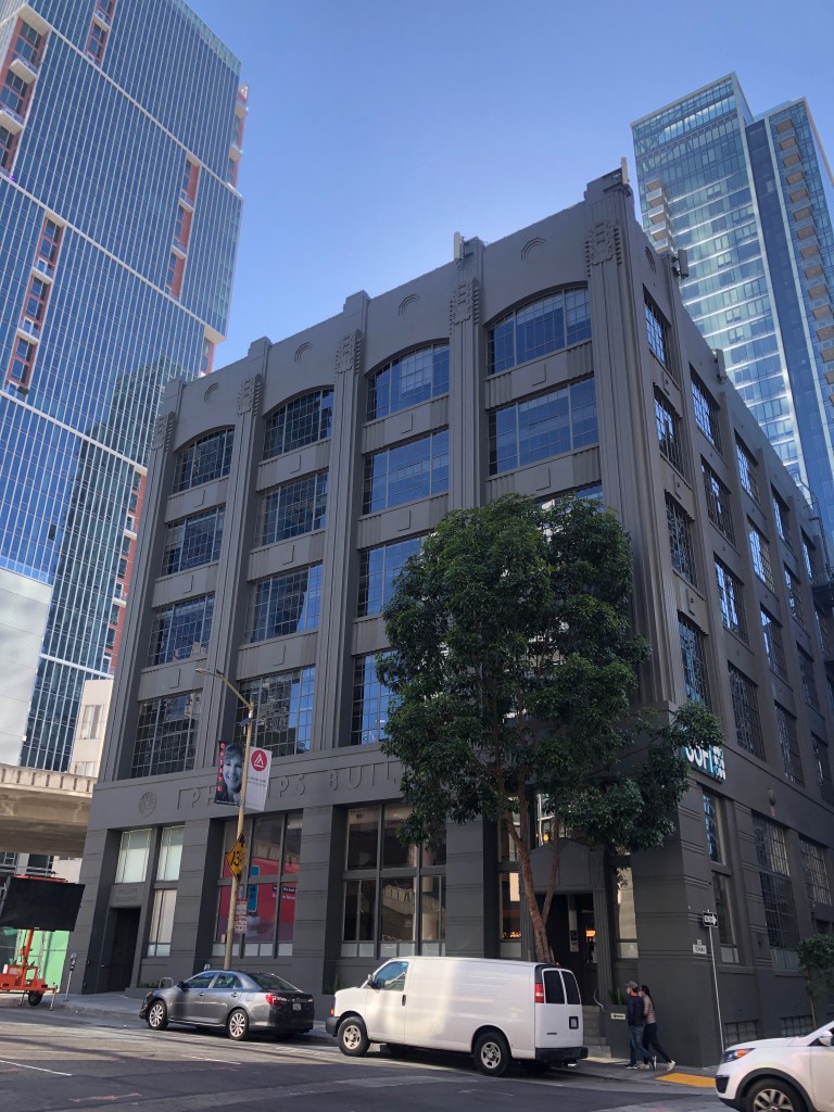 So much has changed in this area. As I mentioned, when I first moved here in ’88, the area was a tangle of freeway overpasses. It was a pretty shady area, literally and figuratively. And right in the middle of it, sat the building below, the Phillips Building (4) , a splendid moderne style warehouse south of Salesforce on First. This was a bit of an icon in the Architectural community, many small creative firms got their start here, many happy hours inside. A lovely old warehouse with huge industrial windows, I worked in one just like it nearby. Where I worked, designer floors alternated with Chinese sewing operations, and the service elevator rides up and down were interesting. We were the original interlopers then. Then the first tech boom hit, and a lot of these companies, us included, were priced out by the next wave of interlopers . And now it had gone to the next level. But now post-pandemic, with less demand , maybe more cheap space will open up.