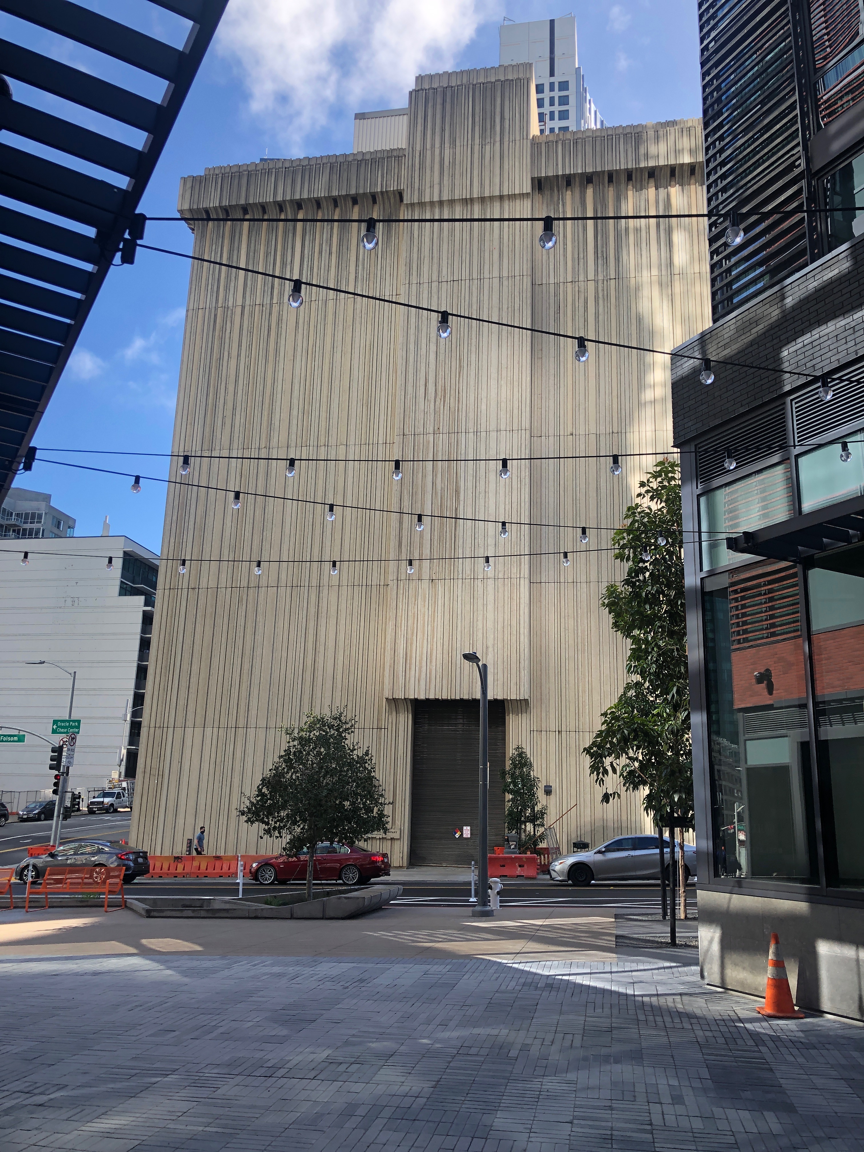 Rincon is a tough area to walk in. The streets are often choked with traffic getting on and off the Bridge. And most of the buildings acknowledge this, they are more about what’s above, glamorous apartments with drop dead views.