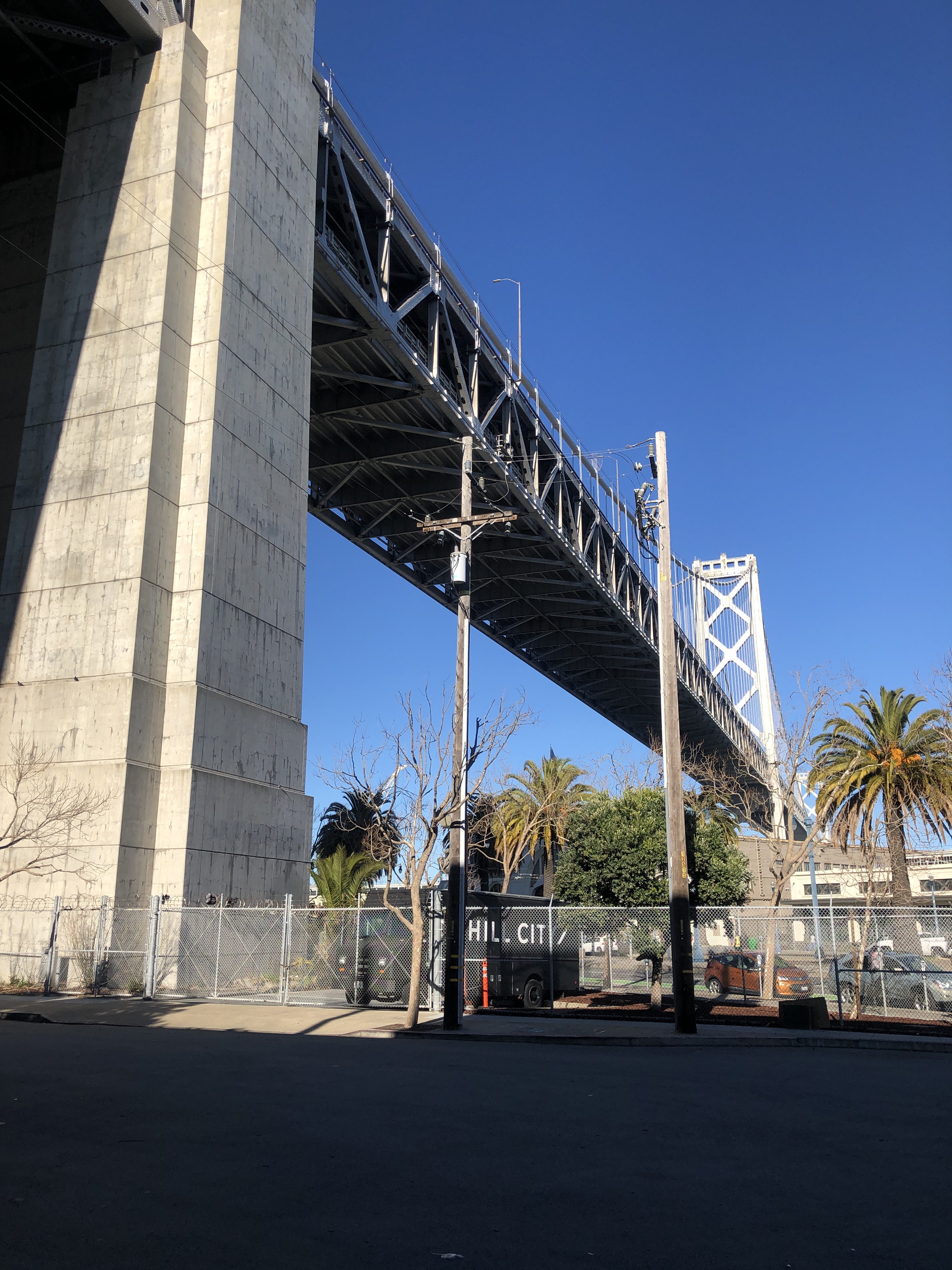 And finally , the we reach Bay Bridge (13) towering above, getting ready to land on Rincon Hill, the din of the traffic 100 feet above your head, with many of those cars getting ready to descend into the East Cut.