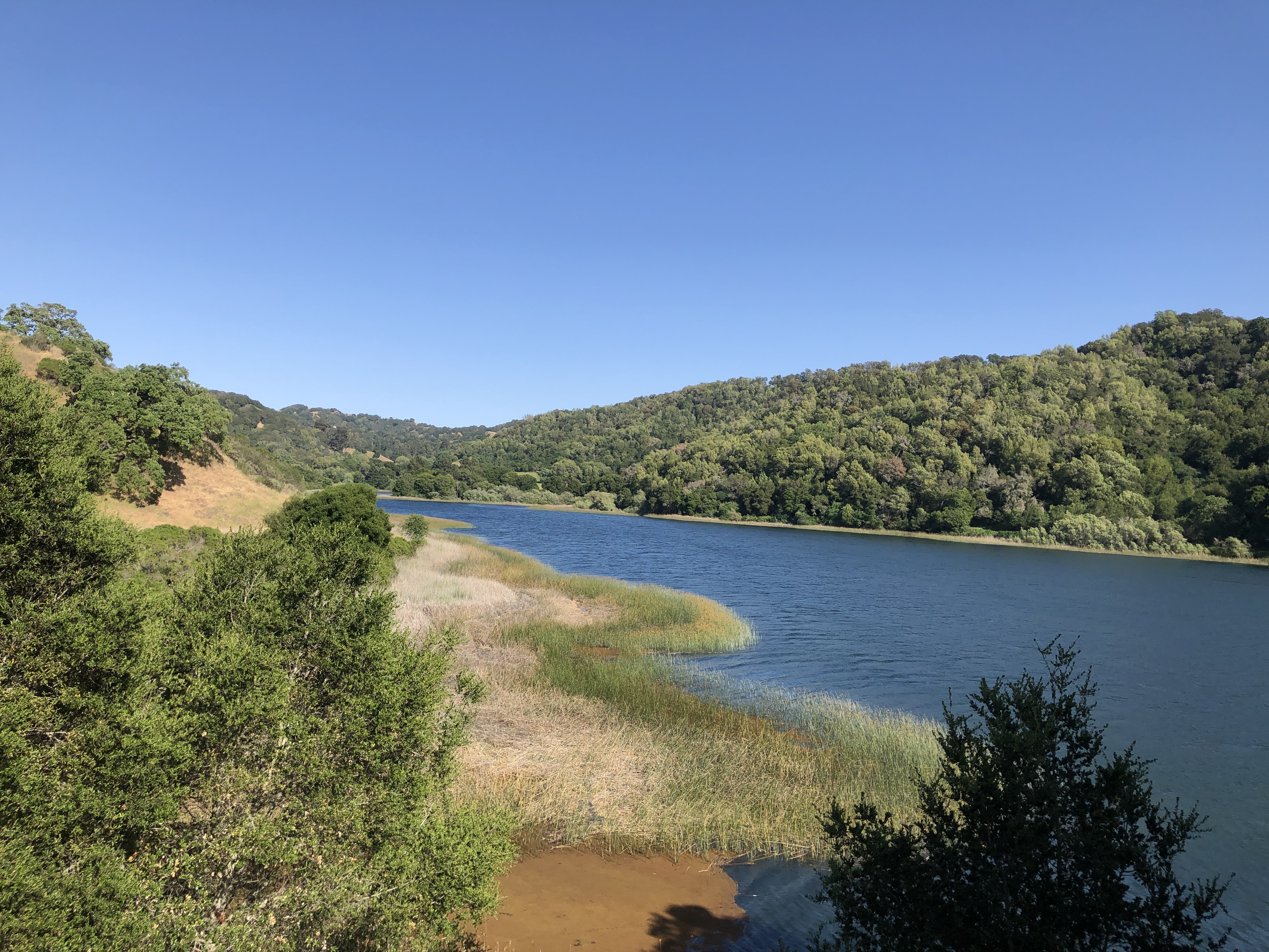 Each reservoir and surrounding watershed has its own character. One can walk , not surprisingly, along the water, here along Briones Reservoir:
