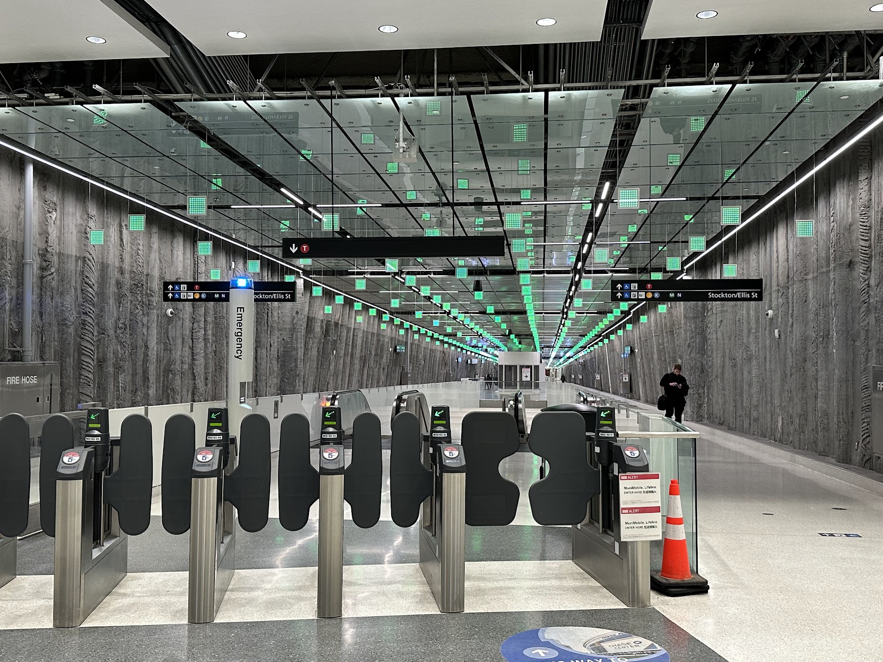 Moments after helping the woman to her new bench, I ducked inside the pristeen new Central Subway Muni Station at Union Square (11), this the subway line I spoke of at the top. The genesis of this line was born after the ’89 earthquake, design began in the 90s, was supposed to be completed 5 years ago, and finally opened earlier this year. It cost 1 Billion dollars per mile. That’s Billion, triple the original estimate.