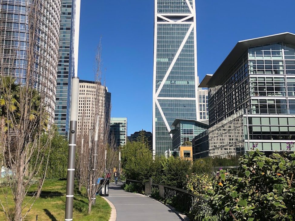 I opted to come into San Francisco, from home in Berkeley, not on BART, but on a Transbay bus, which allows one to arrive at the spectacular Salesforce Terminal (1), perhaps the world’s most expensive bus station. This terminal, which replaced the previous aging bus terminal, is located to suit these busses, but little else. This is the Thursday morning rush hour: