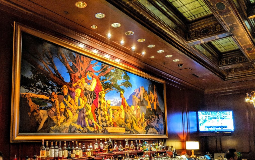 It was lunchtime , and I headed down Post, to the penultimate stop on the Doom Loop. And what better stop…than a bar, and not just any bar, but the Pied Piper in the Sheraton Palace Hotel (12). Downtown still with ample supply of them, offering a quick fix after a tough day. Lord knows I spent too much time sampling downtown’s offerings , and the Pied Piper was always the upscale counterpoint to Sutter’s or the much missed Ginger’s Trois.
