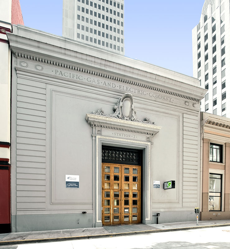 The alleys include little delights, like this old PG and E substation, currently for lease.