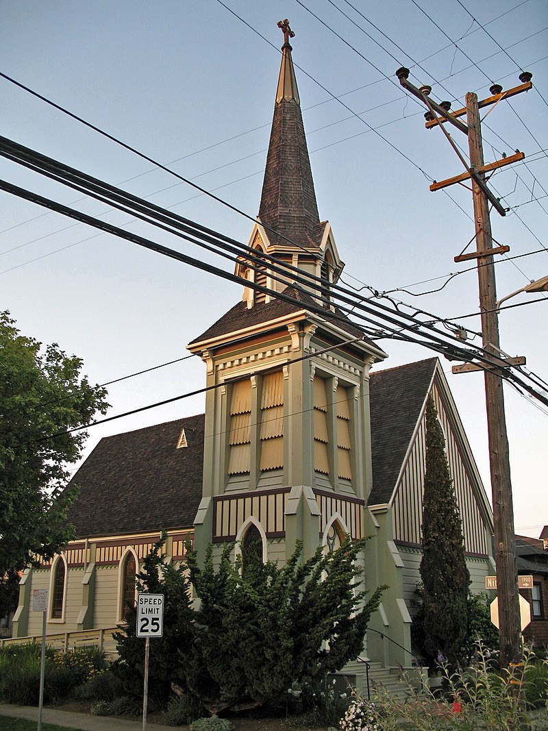 There are also several extant churches , which add to the feel of this as a village in the city. The Church of the Good Shepherd, at 9th and Hearst, built in 1878, is the oldest church in continuous use in the East Bay. It is a fine example of “Carpenter Gothic”, and is much loved by the neighborhood. I once took an evening meditation class there, which was great except for the fact that I would scarf down dinner beforehand, dash to the class, and then, much to my horror, listen to my stomach chatter away in the silence of the church for the next 60 minutes. My fellow Berkeley denizens’ mindfulness was sadly tuned not to the blankness of their mind, but the gastrointestinal cacophony of their neighbor, who as it turns out, could quiet neither mind nor stomach.