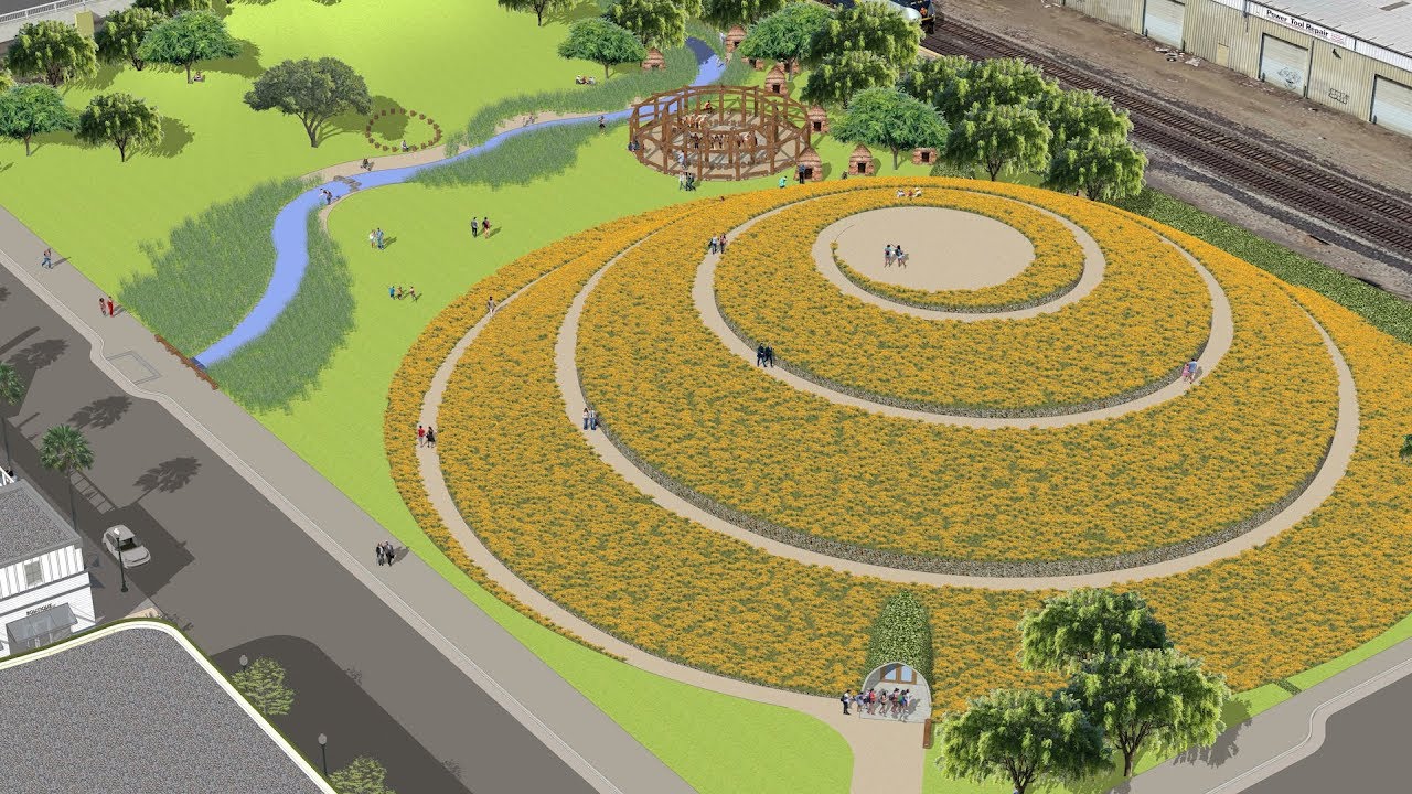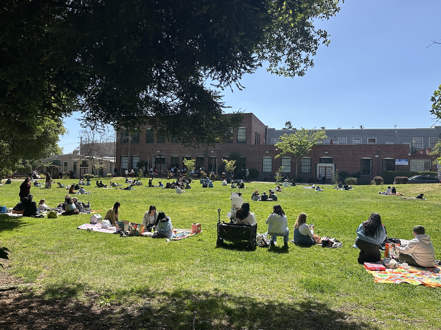 Sited on a former rail line, it is lined on one side with old industrial buildings that were served by the old freight trains. These buildings now house a potpourri of non-profits, neighborhood serving organizations, and a coffeehouse. They frame a large lawn , a playground, and the namesake creek that has been day-lit , offering a bit of the wild in this urban setting. The park draws all of the neighborhood; a mix of families in quintessential East Bay bungalows, Berkeley students in modest apartments , lower income residents of nearby affordable housing, and other assorted bohemians , which had to be our category. It is this neighborhood that in part allows the nearby commercial district’s shops to flourish, and this park allows all to co-mingle.