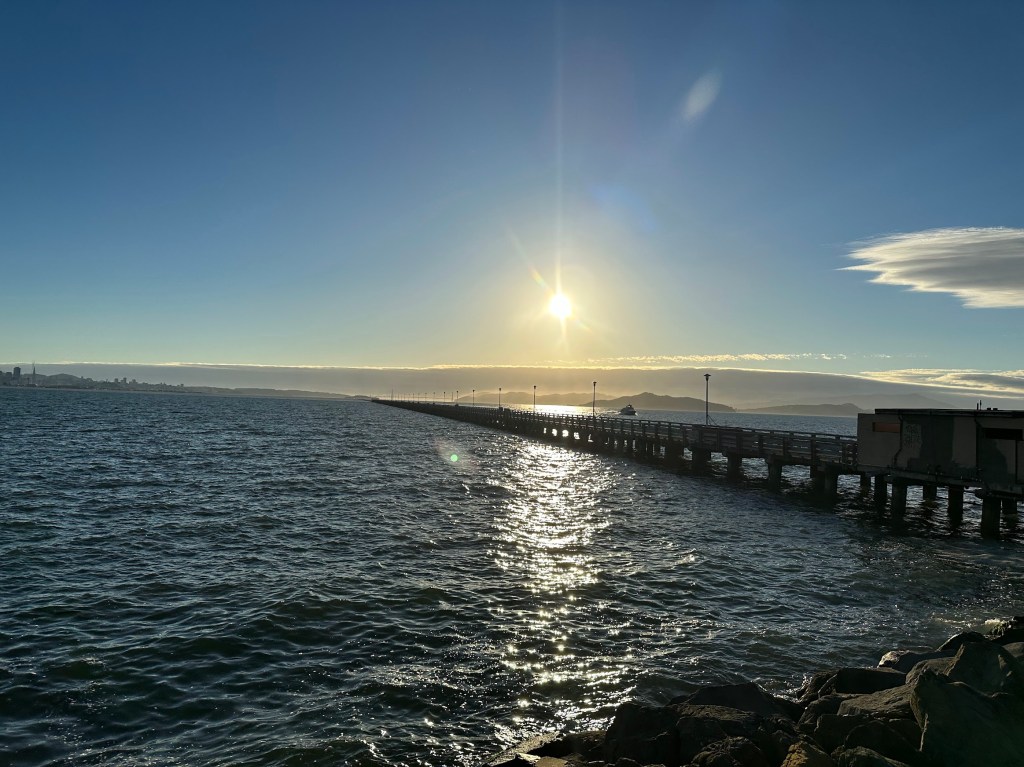 It is along the shores of the Bay that the first known residents of the area, the Ohlone tribe, settled. This prospect would be as they would have seen it, except of course for 175 years of development. And for about 125 of those years, the waterfront was for industry, not introspection. But the Save The Bay movement, begun in the 60’s, started a process of thinking of the Bay not as a resource to be exploited, or filled in, but to be preserved. The efforts have resulted in a necklace of parks and the connecting Bay Trail, and the open spaces near Berkeley Marina , most of it former landfills and industry, a testimony to that.