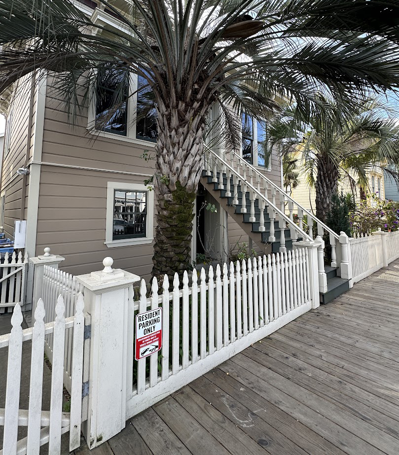 The next wave of people from other places landed here. European settlers, many from Ireland, Germany, and especially Scandinavia, established a village here in the mid 19th century, called Oceanview. Turning east on Delaware, one is in the heart of old Oceanview. Built up starting in the 1850s, one can see many fine examples of lovingly restored 19th century workmen’s cottages along these blocks, complete with picket fences and a boardwalk. The main living levels of these homes were on the second floor to avoid the frequent bay floods, and the legacy of that is the stairs.